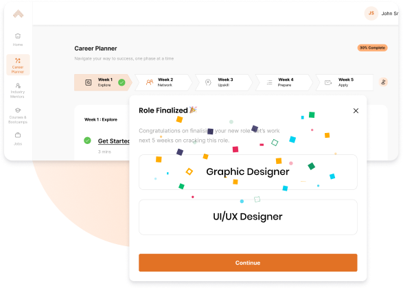 Use our structured roadmap to clarify your career path, grow your network, bridge skill gaps, prepare job applications and interviews, and apply for the best-fit roles. Our full suite of solutions helps you save time so you can land better jobs 3x faster.